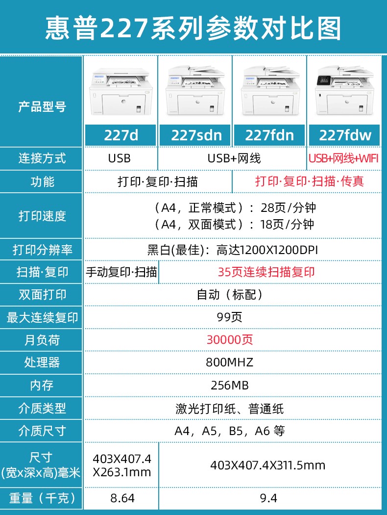 HP 惠普M227fdw多功能一体机,黑白激光打印复印扫描传真一体机